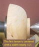4. Jam chuck the blank against a flat surface. Use the offset center instead of the true center. Turn the second tenon to a diameter nearly equal to the smallest diameter your chuck jaws can grip. Keep its width to less than 1/4”.