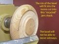 Another less safe method is to jam chuck the bowl against a flat surface with the