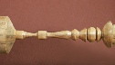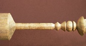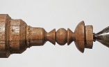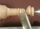 A gouge is used to shape the detail to the left of the ball because two of the surfaces are slightly concave. A skew is not the best tool for cutting concave surfaces. Then a lot of waste wood was removed. X