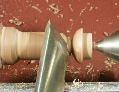 After more shaping with a gouge, followed by sanding, the piece is ready to be parted