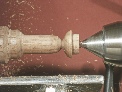 off. To part it off, I pull the tailstock back and then steady the piece with my