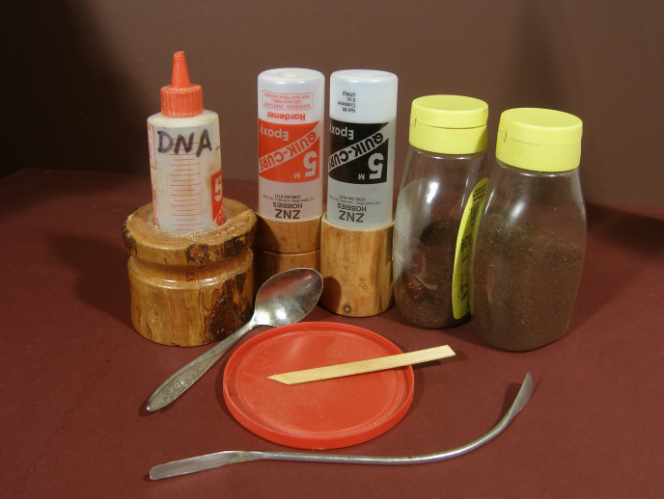 The coffee. I take coffee right out of the can that holds the supply for my drip-type coffee maker. However, coffee grounds that have been processed can be salvaged and used if they are dried completely. These yield a finer texture and the grain in the filler is less distinct. The processed grounds also give a mix that is easier to force into a small crack.