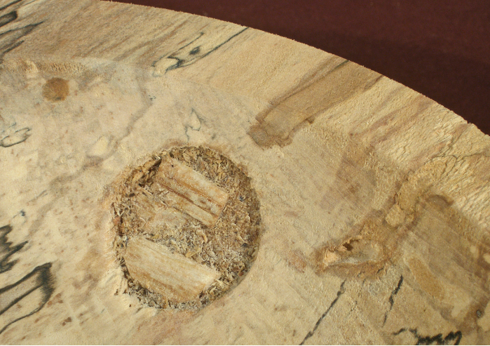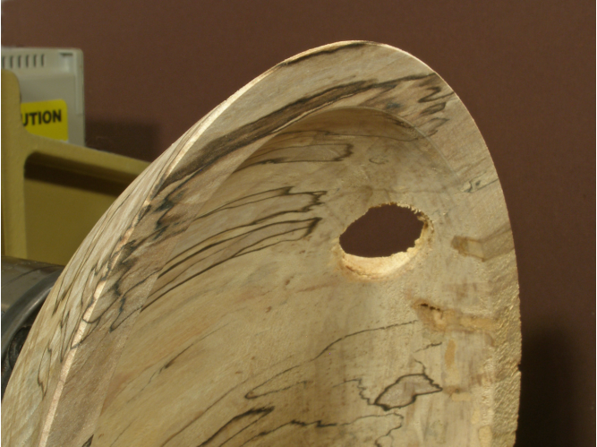 Keep in mind that if you remove the piece from the chuck to do the filling, the piece may not run perfectly true when you put it back in the chuck. Leave enough thickness to be turned away so that a small amount of runout will not be a problem.
