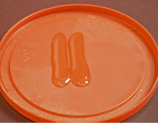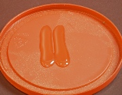 Mixing the epoxy. What I do, first, is to lay a bead of resin onto the surface of a plastic lid from a can of mixed nuts or from a butter cup, whate