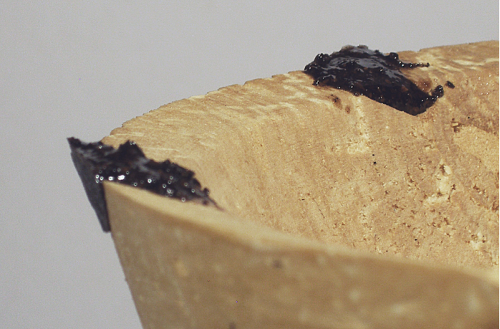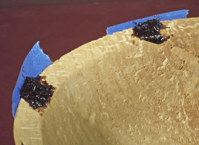 Painter’s tape. If a void appears on the rim of a bowl, a strip of painter’s tape can be used to help contain the epoxy until it sets up. A bit of trial and error will soon indicate the best method for doing this. Just be sure the epoxy fills the void and stands slightly proud of the contour of the surface. The tape can be removed easily once the epoxy has cured.