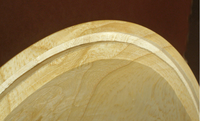Cut the groove to a depth of about 1/8”. Some turners recommend undercutting the sides so that the filler assumes the shape of a dovetail and is locked in. The undercutting can be done easily by swinging the handle of the parting tool to the side by about 15º and then advancing it into the cut.