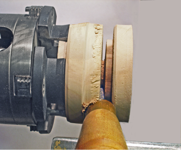 After mounting the blank in a scroll chuck, I used the parting tool to initiate the