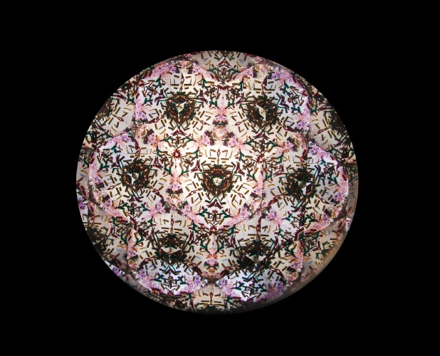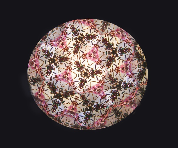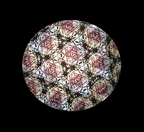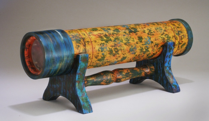 I’ve made many kaleidoscopes. This is the first, a prototype made from very plain wood, which I colored with acrylic inks. Not everyone likes my choice of colors. For instructions on how to build a kaleidoscope, check out the Links , accessible via the home page. The following images were obtained from the kaleidoscope shown at left.