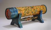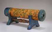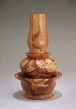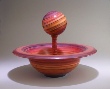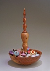 President’s challenge: make something with a finial. So what do you do when the only thing you can turn is a bowl? Make a bowl with a finial, of course. Bowl is cherry, 7.5” d, 2.5” h. The finial, a bit overstated, is gum and cherry, 12” h. Center section of the finial is hollow.