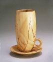 Yet another President’s challenge: something whimsical. I submitted this tall cup made from spalted willow, which is very light. Handle is ash. Cup is 6” h; saucer is 4.25” d.