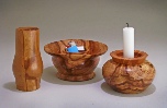 President’s challenge: something useful for the home, other than a bowl. I made this candle holder that may provide a source of light in an emergency. Base is plum; midsection is plum with a cedar ring. Top is gum. 9” h, 5” d
