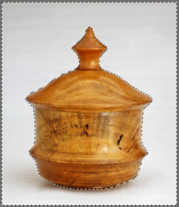 Remember the little pine box from Part 2, the one taken in front of the textured background? Adjusting the brightness of the box resulted in a background that is too bright for my liking. We can use the quick selection tool to select the background, and once it is selected, we can tone it down a bit. Here are the original, the selection, and the final result after making a brightness adjustment to the background.