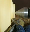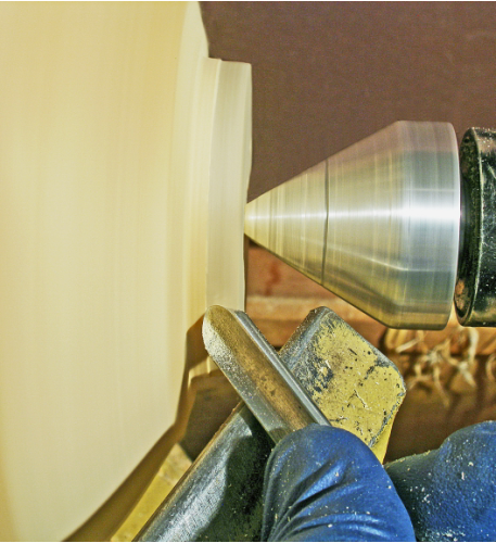 on a Powermatic lathe. Note the sawdust at the lower right – that really doesn’t