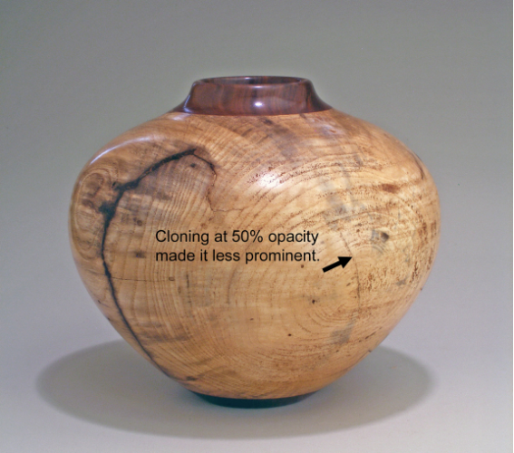 This tool is used to remove or modify relatively small spots or imperfections. For example, suppose you have a photograph of a bowl taken against a fairly light backdrop, and a tiny wooden chip shows up prominently just in front of the bowl. The bowl looks good, but all you can see is the chip.