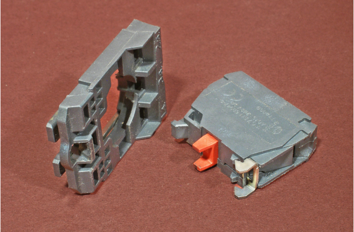 The parts of the assembly, namely the actuator, mount base, and switch, are standard industrial components and are available from many sources. A web search for these part numbers will turn up a lot of hits.