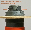 Install the new actuator assembly. Orient it so the slots for the metal clip are on the sides as opposed to being on the top and bottom. Install the nut and tighten moderately.