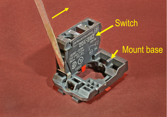 The following photos show how the switch is removed from the mount base by using