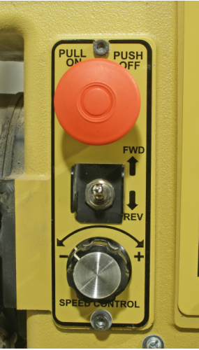 Here’s a way to get your lathe going again with a temporary fix that will allow you to use your lathe while you wait for parts to arrive. The idea is to install a toggle switch, obtained locally, in place of the big red knob. It may not be as pretty, but it will work.