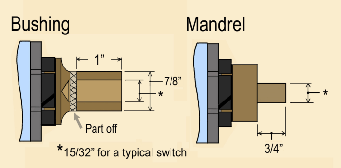 Here’s a bit of a catch: if your lathe is inoperative, how can you turn the disks? Perhaps you have another lathe, but if you don’t, simply use the square blanks as you cut them from the sheet. It won’t be quite as neat and the switch will not automatically center in the mounting hole, but it will get you up and running again.