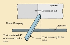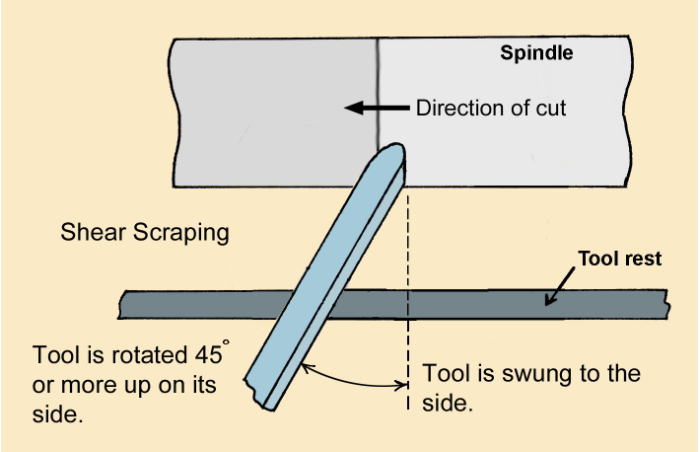 Another approach is to place the tool at an angle. This is shear scraping, which