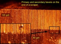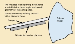 Sharpening a scraper consists of two parts: one is forming the shape of the cutting edge and establishing the bevel angle. In other words, dealing with the things you can see.