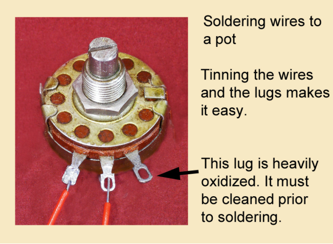 Often we will tin a wire and the contact to which it is to be connected before we