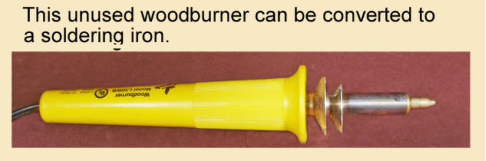 Convert a woodburning iron to a soldering iron.