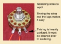 Solder a wire to a lug.