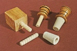 One method for making bottle stoppers uses a 3/8” dowel glued into the blank to hold it during the turning process. A cork bushing is eventually placed over the dowel to form the sealing surface for the completed stopper.