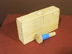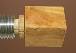 12. Make the fixture. Take a section of a “2 x 4” about 6” long and mark a line on one of the sides at the center of the piece. Continue the line across one edge, and locate the midpoint of the line on the edge. Drill a 3/4” hole almost all the way through the piece. It is not a bad idea to make a hole for a knockout rod, in case the collet gets stuck in the fixture.