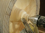 Hollowing the blank. Once the outside profile is completed, the blank is reversed