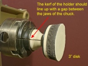 When installing the holder, place the saw kerf in line with a gap between the jaws of the chuck.