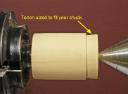 Mount the blank in your chuck using the tenon formed in the step above. Part off