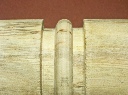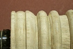 Cutting a bead. On a practice spindle, use a parting tool to cut two grooves near its center about 3/8” apart and 5/16” deep. Then use the B/P tool to round the sides of the center ring to form a bead. As you do this, practice looking at the “horizon” rather than directly at the cutting edge; that is, look across the top of the spindle where you can see the curve in profile.