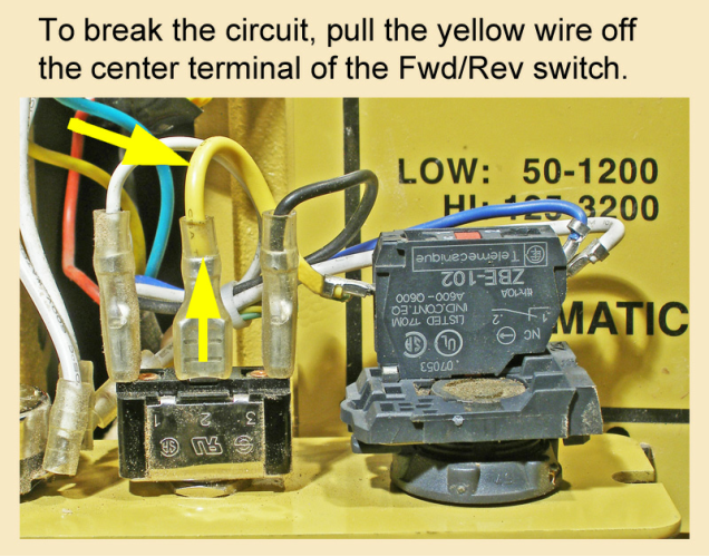 contact on the other. That is, bridge the switch with the test wire. If the lathe
