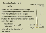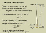 Target circle diameter = correction factor x diameter of the sphere