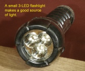 Which source do I use? Even though both work well, I use the halogen bulb to avoid having to deal with batteries for the flashlight.