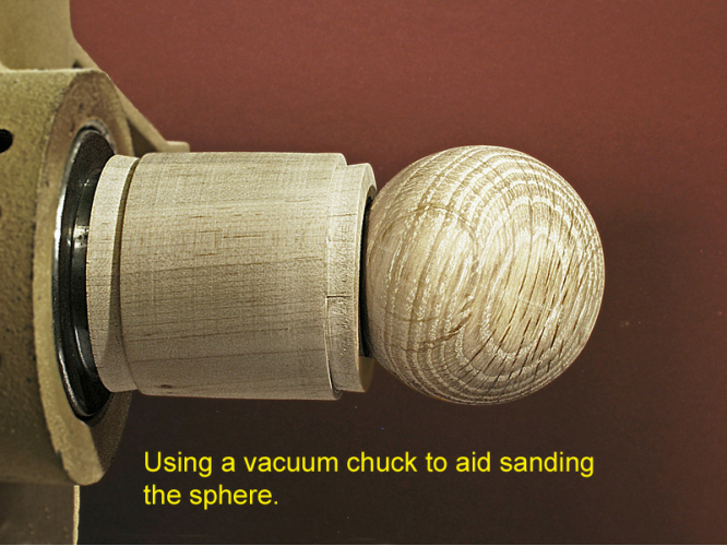 A link is given below to an article on this site that shows how to make a vacuum chuck for the specific purpose of holding spheres for sanding.
