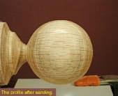 As you near completion of the sphere, do the sanding before reducing the diameter of the nubbin significantly.
