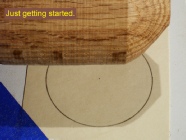 Some practice may be required for you to become accustomed to the cutting process. This is quite similar to being able to make a cut while looking across the top (horizon) of a workpiece instead of looking where the tool makes contact with the wood. In this case you will be looking at the shadow cast on the target circle.