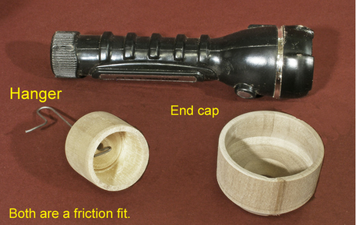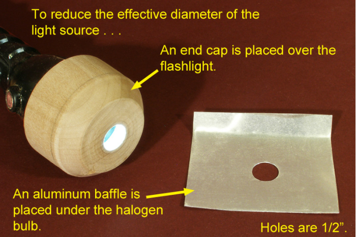 Another end cap with a 1/2” hole fits over the business end of the flashlight to limit the diameter of the light source. It too is held on by friction.