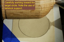 Position the tool rest so you can see past it to the target circle. If the cutting