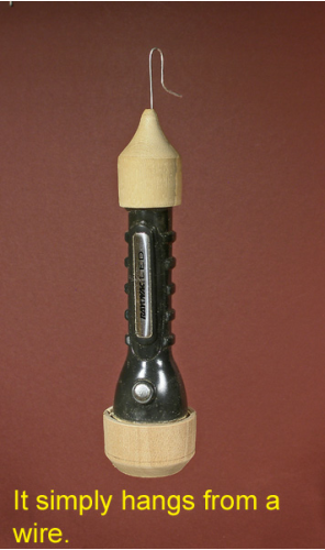 My LED flashlight simply hangs by a wire from the baffle made for the halogen bulb. The wire is attached to the flashlight by way of a small end cap that gives a friction fit against the rubbery surface of the flashlight.